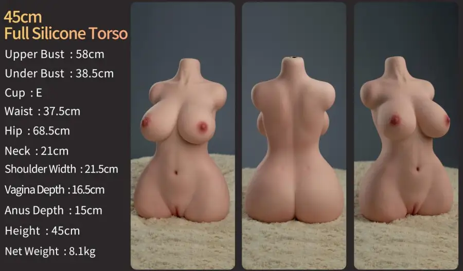 Beautiful almost life-size torso, soft skin body, realistic touch, like a sex doll that will be your beloved, your lover, your great love. The metal skeleton allows you to perform a variety of poses that meet your desires. You can enjoy the act of love in all its forms. Fill it with your love and make it belong only to you.